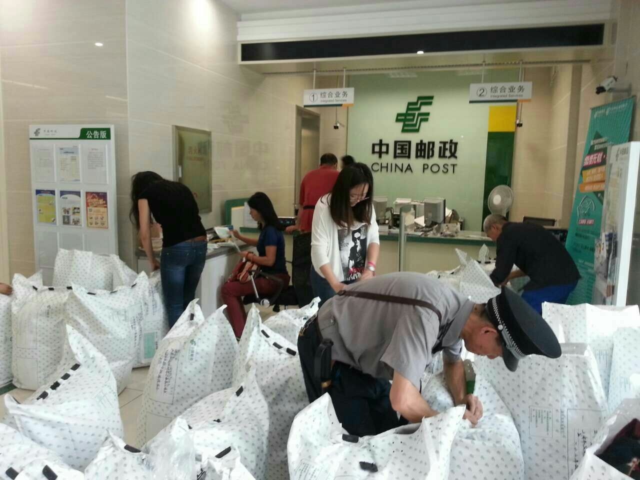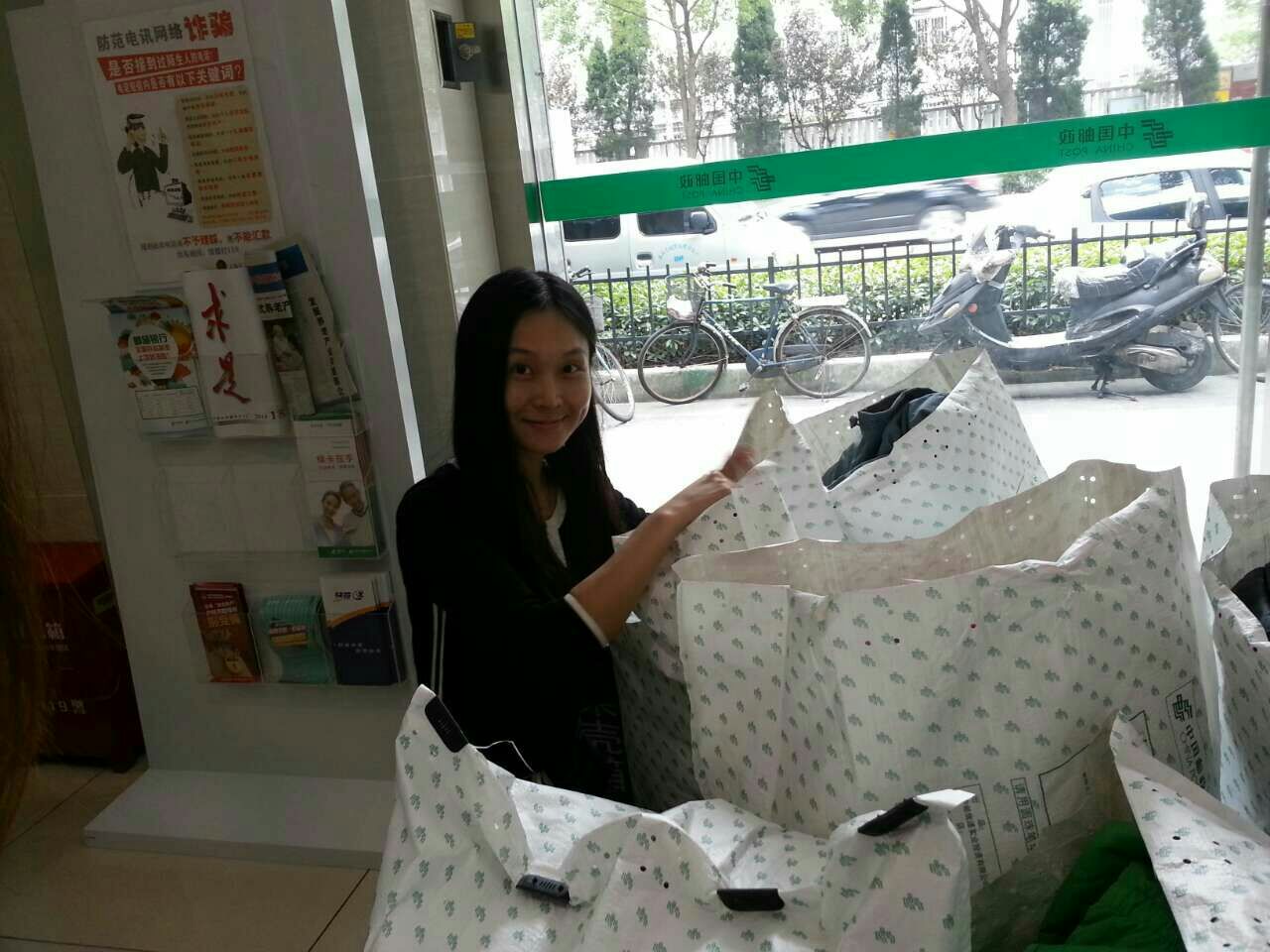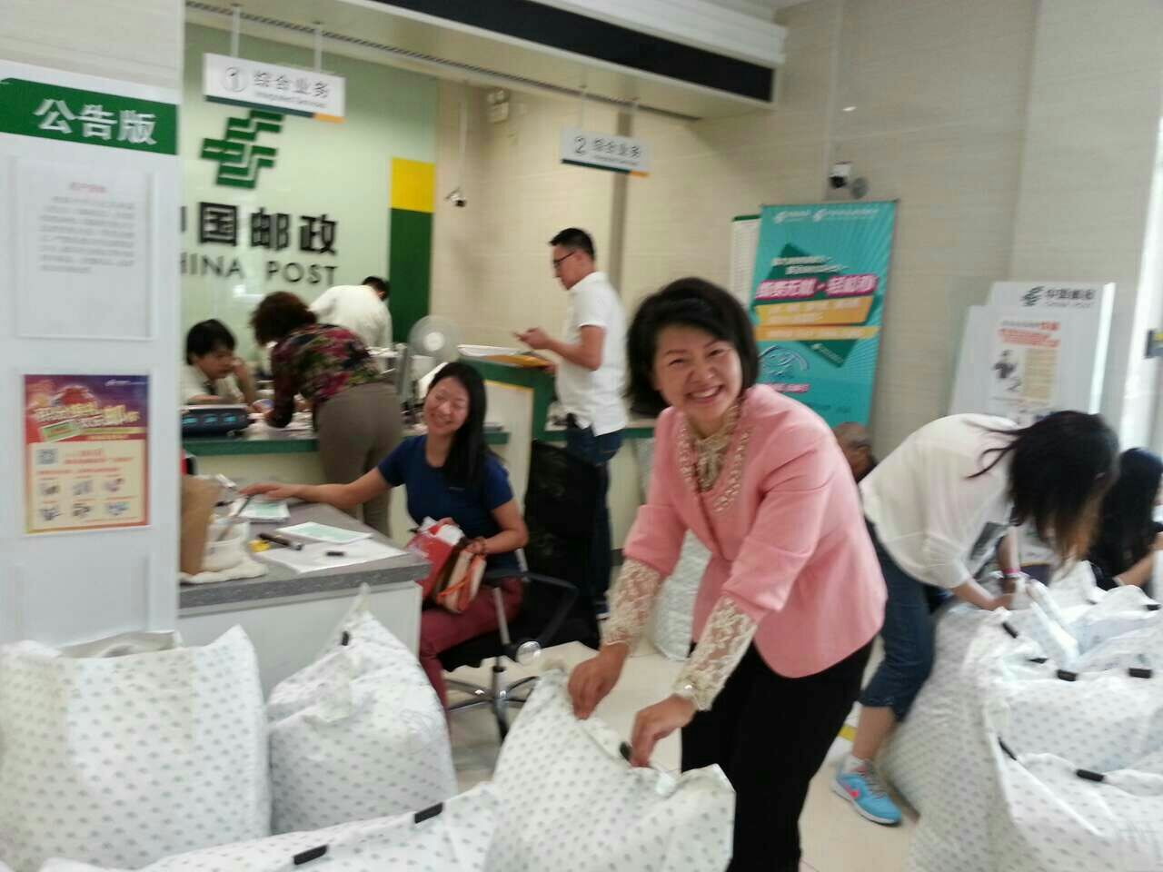 10月10日早上 9个班的20多位热心家长,来参与打包发件。二,三年级的妈妈们是第二,三次操作,很有经验;一年级的家长们也很齐心,很快就将所有衣物装袋理好。每个班的家长都满含着美好的祝愿,热情而迅速地将所有的衣物整理,统计登记,装袋,运输,送到花木邮局进行投邮,几位做财务的妈妈负责清点邮资,汇总数据,填写快递单和包装袋外面的地址等等。39个大邮包由家长们打着双跳灯的车队经过好几次的来回,送到了邮局。在邮局的例行检查后,我们再密封邮包,工作人员帮助我们称重算账,很快我们完成付款!
